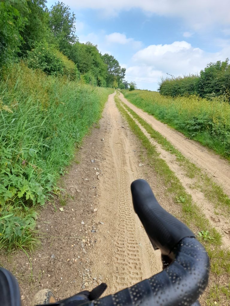 At a spot midway I decided to sit on the grass for a picnic of Quorn slice sandwiches and a banana. At this point a group of ramblers arrived, using the broadening in the track to regroup. As their stragglers caught up, we exchanged pleasantries. One interested member of the group asked about the introduction of disc brakes and we chatted further about his history of time trialing in the 60s and 70s. In the end I had to point out that his comrades were now about half a mile down the road and he made tracks. I wonder if he’s ever read this blog? Maybe I should have mentioned Gravel Notts but didn’t want to appear to be using the opportunity to market the website. I’m far too polite for that.