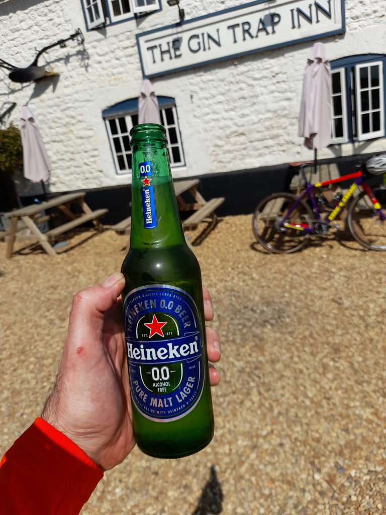 Having refueled I made my way back through the villages gaining a little back in terms of average speed, not that that was important to me. Spotting a picturesque village pub, I took a break and a 0% beer to celebrate an excellent day in the saddle. Basking in a warm summer afternoon with a cold beer that tasted better for having been earned.