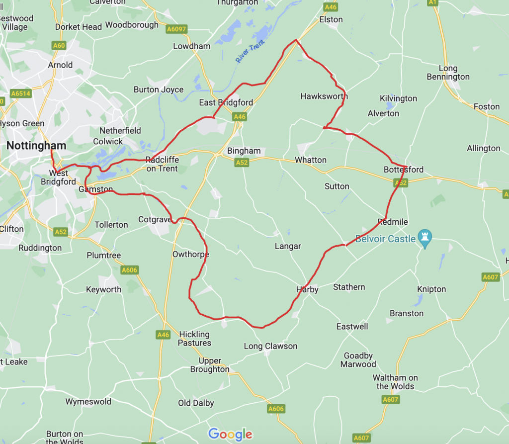 After leaving the Grantham Canal the remainder of the ride loops back through the villages with mainly quiet unclassified lanes and picking up gravel trails where available. It’s a relatively flat route to be enjoyed at your leisure.