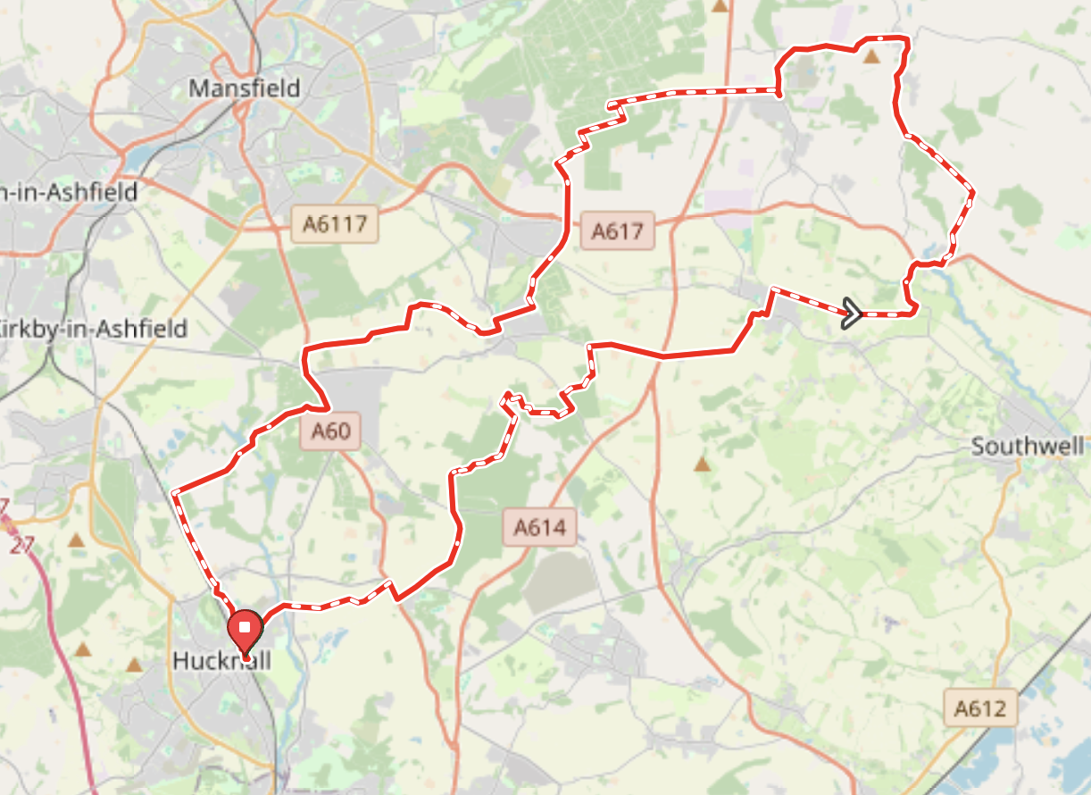 This mid-mileage route takes in National Cycle Network (NCN) Routes 6 and 645 through Newstead Abbey to Bilsthorpe, before heading out towards Eakring. There then follows a technical section emerging at Kirklington where the route picks up the Southwell Trail back to Bilsthorpe to retrace its tracks back to the starting point in Hucknall.